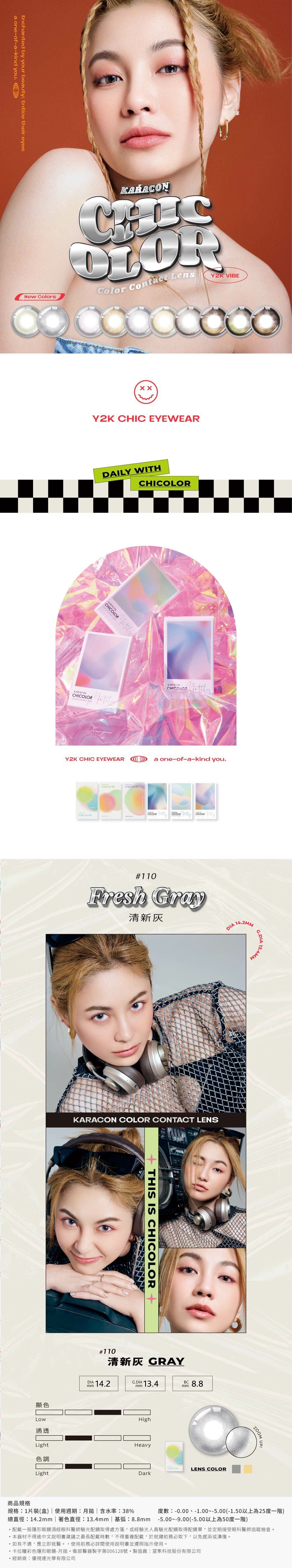 KARACON CHICOLOR 38% 月拋 110 清新灰 1片裝/盒